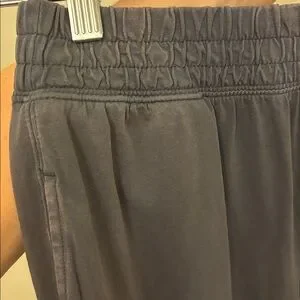 Features: Soft, jersey fabrication; relaxed fit; cropped muscle tee top with seaming detail; ankle length pant with high-rise waist and wide leg; elasticated waistband and cuffs; crossover detail on top; ribbed collar; side seam pockets