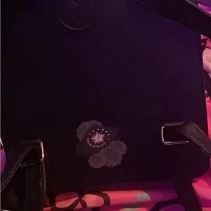 Chic black backpack with striped front flap. Features buckle accents and embossed emblem. The hand strap ripped due to use but can still wear as a backpack if u can stitch u could fix the handle