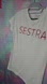 Fitted t-shirt with 'Sestra' in a scratched handwritten font on the front in red & drawn red wings on the back from the hit tv show Orphan Black from 2014. Measures approximately 17" pit to pit & 26" long.