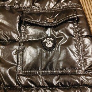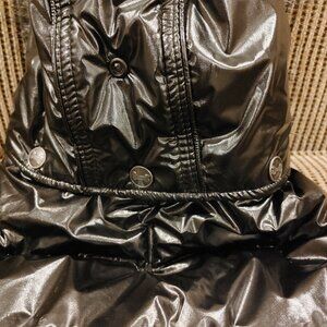 Hotel Doggy Black Hooded Dog Coat Sz L Pocket Detachable Hood Pleather Look