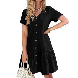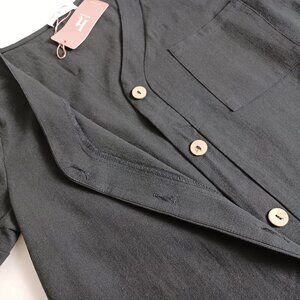 A versatile dress in a classic black shade. Made from comfy breathable cotton, has no stretch and is unlined for a lightweight feel. It’s an A-line design that falls above the knee length. Perfect for spring and summer. New with tag. Excellent condition.
