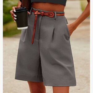 PREMIUM MATERIALS - 80% Polyester, 16% Rayon, 4% Spandex, won't too soft, cool and comfy, create a crisp and sleek look. Comfy bermuda shorts for women, summer shorts for women, dressy lightweight shorts for women, pleated shorts women.