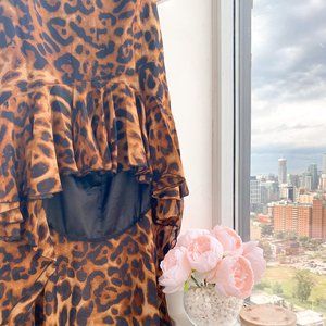 Give your wardrobe a seriously chic update with this dress. Featuring a brown leopard print material with tiered ruffle detailing.