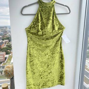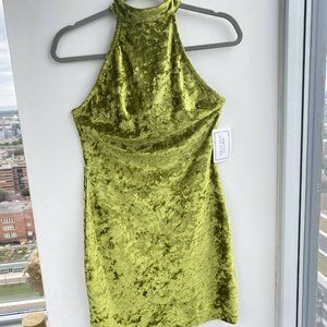 Hottie Couture Women's Green Velvet Sleeveless Halter Neck Bodycon Mini Dress
