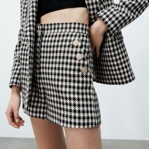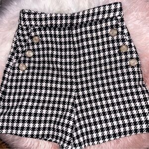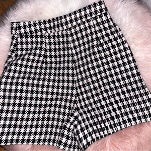 Elevate your style with these chic houndstooth shorts. Featuring a classic black and white pattern, they are perfect for any occasion. The high-waisted design offers a flattering fit. Worn only once.