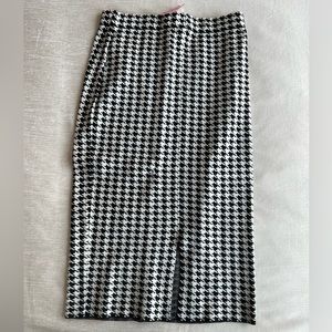 NWT knit set in houndstooth design. Top is mock neck and long sleeve. Skirt is traditional pencil skirt style. Midi length with small slit in back for ease of movement.
