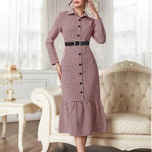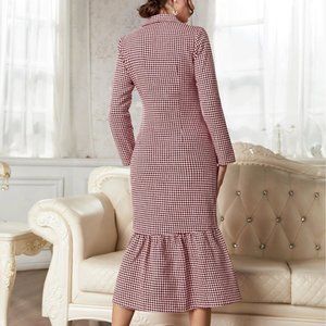 Houndstooth Print Belted Tweed Dress