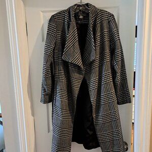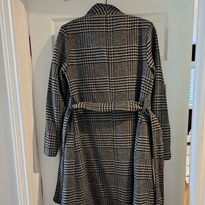 Houndstooth grey and black wrap coat knee length - sz: XS: