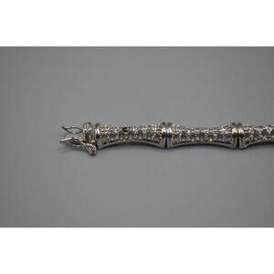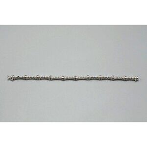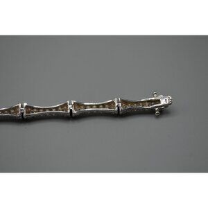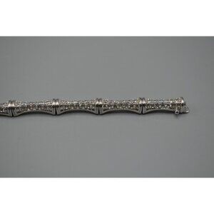 A sterling silver bracelet with three rows of clear stones on hourglass beads, possibly cubic zirconia. Bracelet is stamped "925 PAJ". It weighs 20.34g and measures 8". Please review photos closely.