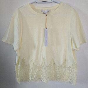 House Of Harlow 1960 Elegant Butter Ivory Cream Lace Trim Top Size L