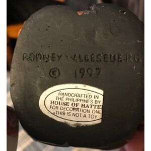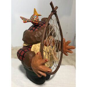 This 1997 collectible Santa figurine is meticulously handcrafted by House of Hatten. Featuring a unique dreamcatcher and a colorful bird on his hat, it's an artistic piece for discerning collectors. The intricate details and craftsmanship highlight its decorative appeal, while the playful elements add a touch of whimsy.