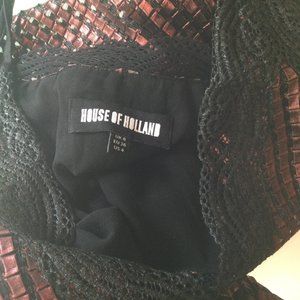 House Of Holland Chainmail Print Metallic Slip Dress with lace (Rust Color)
