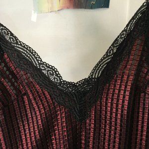 A metallic print slip dress with adjustable straps and pretty lace trim