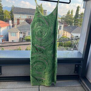 Jacquard-like knit dress, inspired by the circular patterns in hot springs. The cami silhouette gives an asymmetrical twist, where two straps sit over one shoulder and abstract cut-outs grace the back. NWOT!