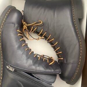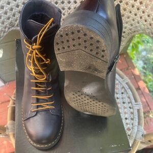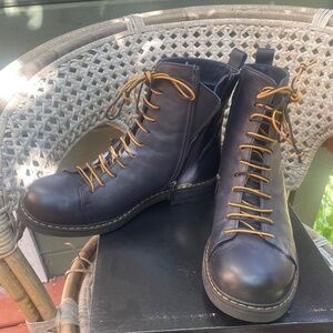 Beautiful band new navy blue leather ankle boots size 39. Side zip, lined.