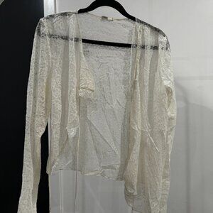 Beautiful and unique lace top. Can be worn more covered up than shown on model!