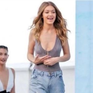 “Romane” Gray Vegan Suede Zip front bodysuit