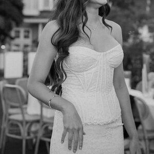 Set to stun at any special occasion, the captivating beauty of 'Solaine' catches every eye. This all-in-one floral lace number gives the illusion of a corset and skirt pairing. You'll find the delicate lace fabric is meticulously crafted to a classic corset top with intricate boning and an underwired bust that provides enough support to leave your shoulders on display. At the back, you can increase the cinch with our signature lace up back and there's a side zip for added comfort.