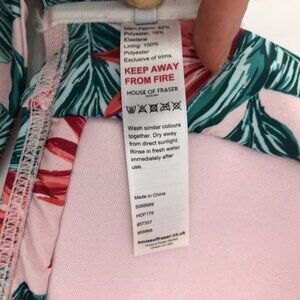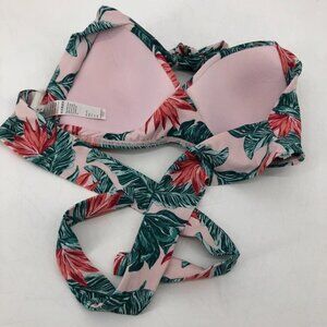 House of Fraser pink green palm floral bikini top size 12 tie neck