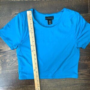 Vibrant blue crop top. Short sleeves. Perfect for casual wear.