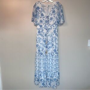 House of Harlow 1960 Blue and White Flutter Sleeve Maxi Dress M