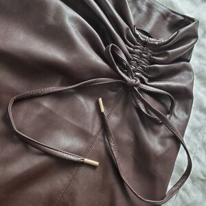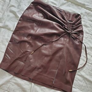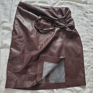 House of Harlow 1960 Dark Brown Side Ruched Slit Vegan Leather Skirt Small