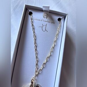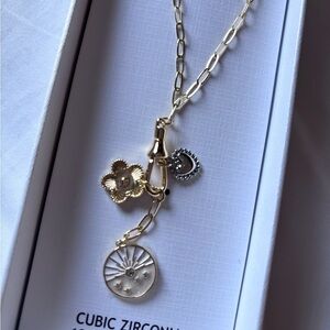 This exquisite gold necklace from House of Harlow 1960 showcases a series of delicate charms, offering a touch of elegance and modern style. The minimalist design and fine craftsmanship make it a versatile piece, perfect for everyday wear or special occasions.