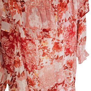 House of Harlow 1960 Pink White Red Off Shoulder Flowy Dress Sz L