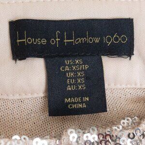 House of Harlow 1960 Sequin Flare Pants XS Champagne Metallic Glam Showgirl