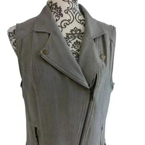 House of Harlow 1960 Stevle Faux Suede Zip Moto Vest Belted Grey Women's Medium