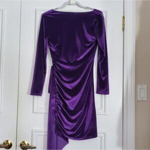 A beautiful velvet and sleek dress with a glamorous vibe. Vivid purple.