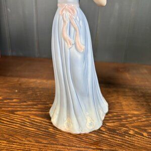 Charming House of Lloyd porcelain figurine from the Celebrating Life’s Most Cherished Moments series, featuring an elegant pastel-toned lady in a flowing gown. This figure was produced as decorative collectible in 1990 and displays beautifully.
