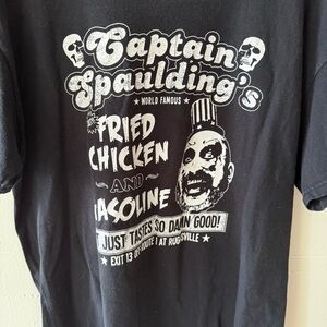 Captain Spaulding's black graphic t-shirt. No brand and some cracking (in the best way) on the logo.