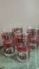 Houze Glass Tumbler Set, in excellent condition. Tall size, clear glass with heavy ridged base, stained glass Seasons Greetings design. Measurements in photos.