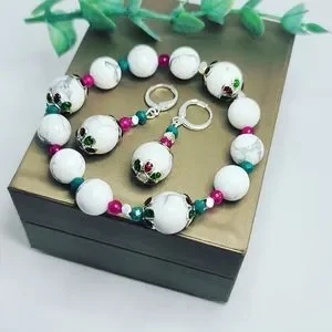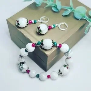 Howlite, Ruby Agate and Czech Glass bracelet and bracelet set