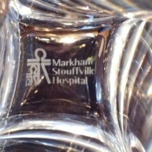 Hoya Crystal Twisted Vase Markham Stouffville Hospital Inscribed on Bottom