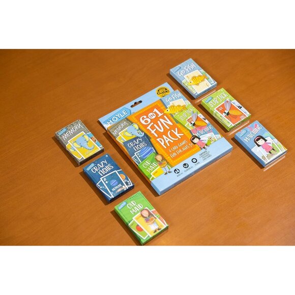 KIT INCLUDES 6 HOYLE KIDS CARD DECKS – You will receive a total of 6 , Memory, Crazy Eights, Old Maid, Go Fish, Slap Jack and Matching. Each game is individually packaged in bilingual French and English packaging