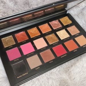 Lightly swatched and used a few times. Beautiful palette. Glitters are a cream consistency hence the indentation.