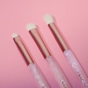 Inspired by the rose quartz crystal, create mesmerizing eye looks that make you feel empowered & abundant in self-love with this 3-piece, synthetic fiber eyeshadow brush set.