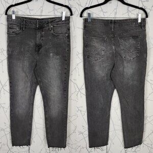Hudson Black Wash Heidi High Rise Straight Leg Jeans Raw Hem