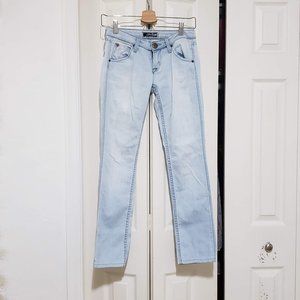 Hudson Premium Denim - straight leg jeans, faded with buttoned down back pockets.