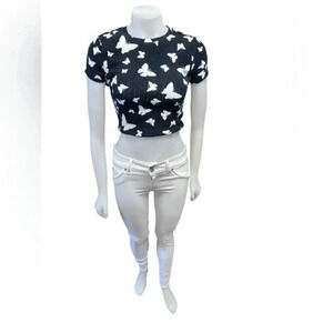 White jeans, NWT featuring a five pocket design with belt loops and a double button and zipper closure. The Collin Skinny jeans are midrise with considerable stretch available.