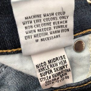 Hudson Nico Midrise Skinny Ankle Length Jeans with Raw Hem, Size 26