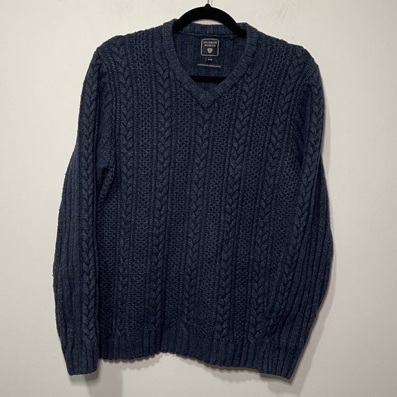Hudson North Men’s Navy Cable Knit Lambswool V-Neck preppy academia Sweater M