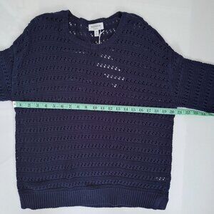 Hudson North Navy Blue Cotton Open Knit Sweater NWT