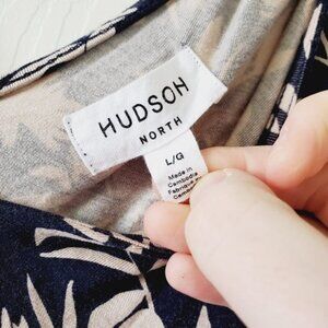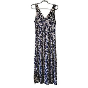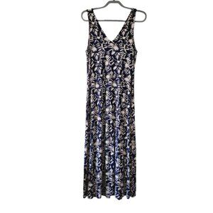 Hudson North Navy Floral Prairie Jersey Side Slit V-Neck Beach Maxi Dress L