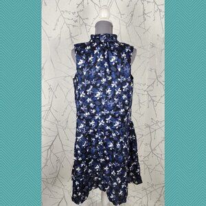 Hudson North Navy Floral Print 100% Linen Peplum Flowy Midi Dress
