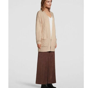 Hudson North Open Front Cable Knit Cardigan Oat Beige Size Small