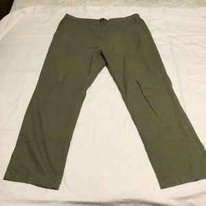 Men's casual, linen blend pants, featuring button and zipper closure, draw string, front and back pockets.