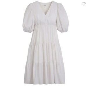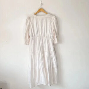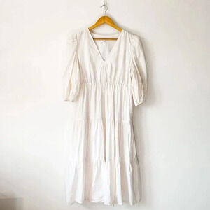 Hudson North Striped Prairie Puff Sleeve Tiered Midi Dress Cotton Sz L